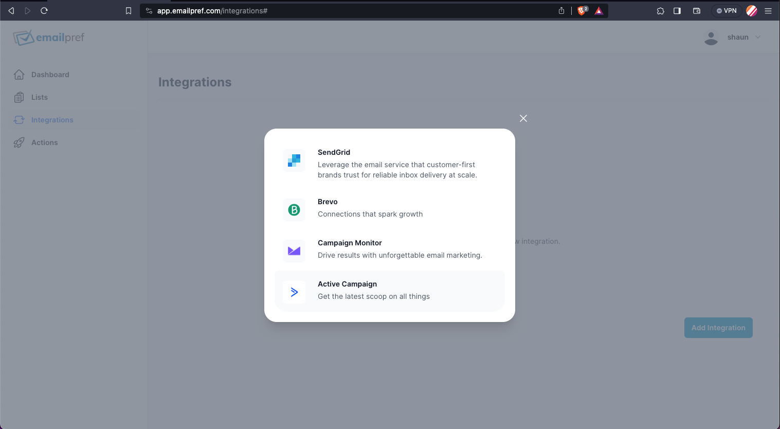 By following these steps, you'll establish a seamless connection between Emailpref and SendGrid, ensuring efficient data synchronization and enabling users to manage their email preferences effortlessly.